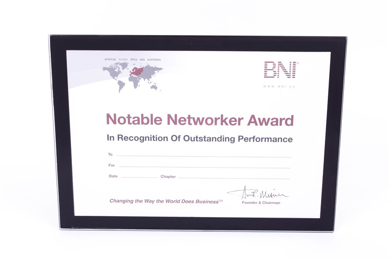 Raise the prestige of awarding the monthly Notable Networker with these NEW A4 frames supplying you for the whole year!